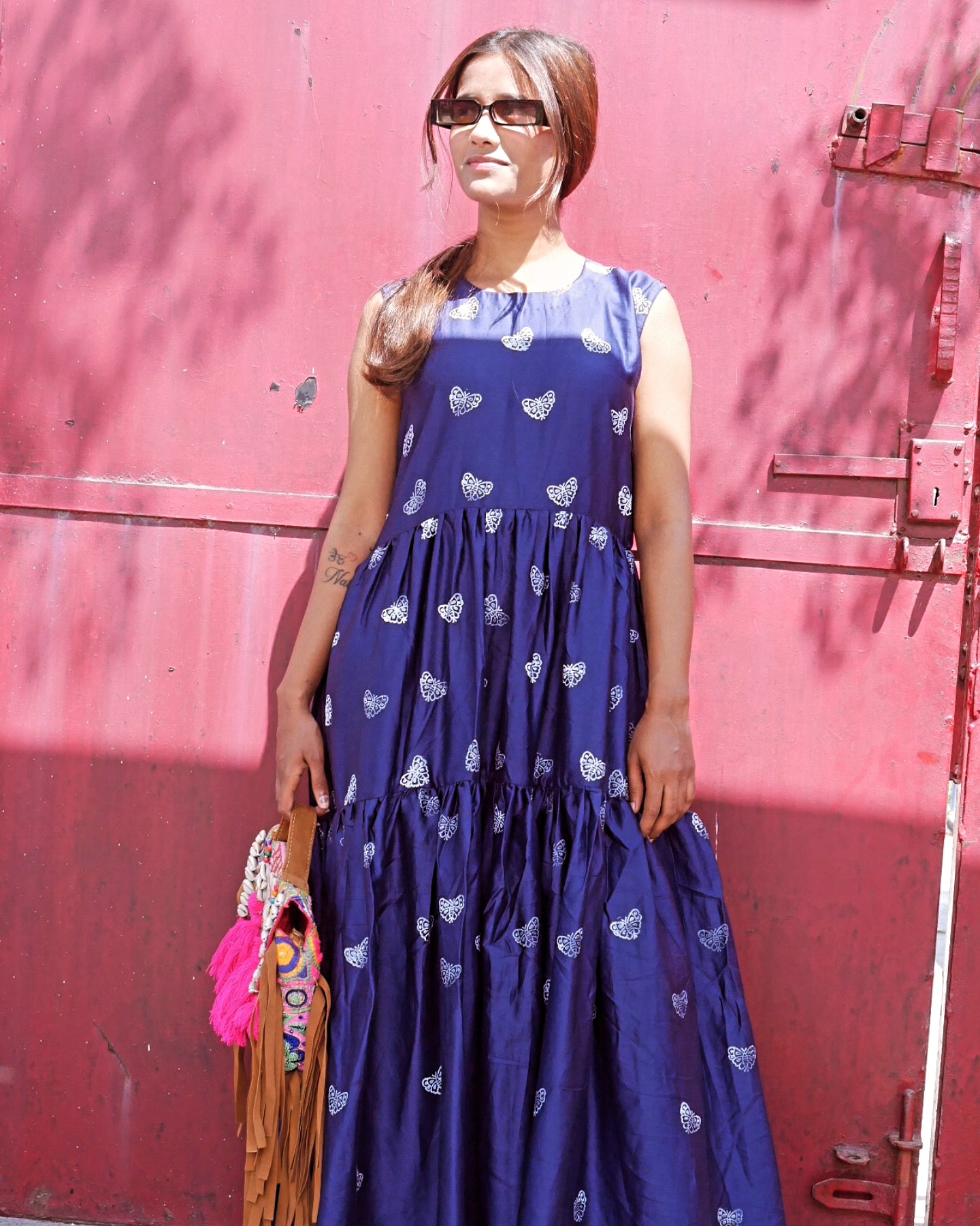 Stay cool and stylish in this airy cotton maxi dress featuring delicate handblock butterfly prints. With its relaxed fit, flowy silhouette, and breathable fabric, it’s the perfect pick for sunny days.