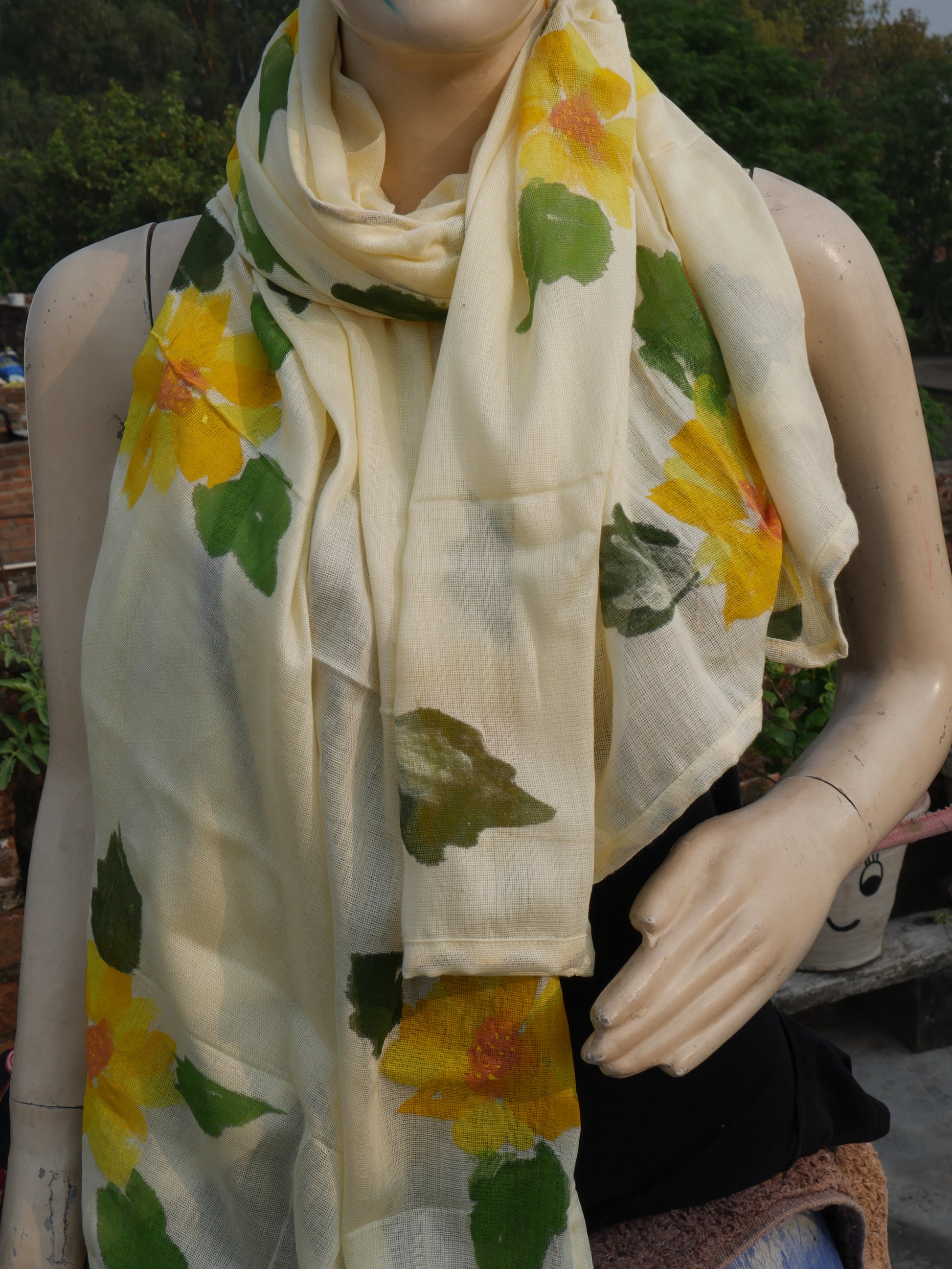 Lemon yellow handpainted sunflower scarf