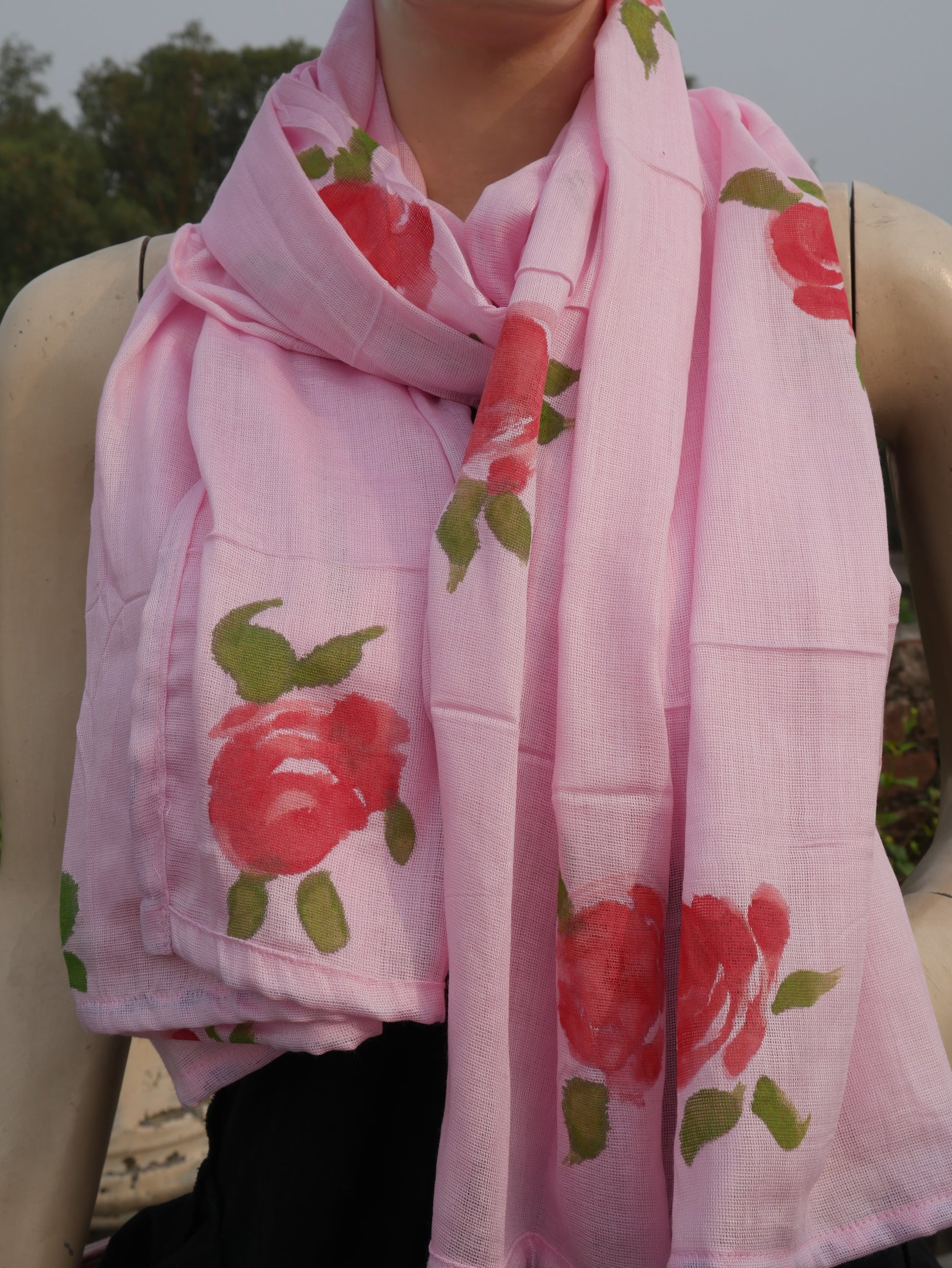 Pink handpainted rose scarf
